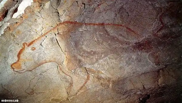 Изображение пещерного медведя, сделанное красной охрой в одном из первых залов.