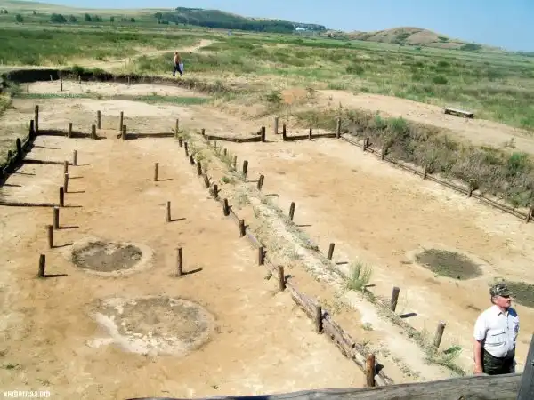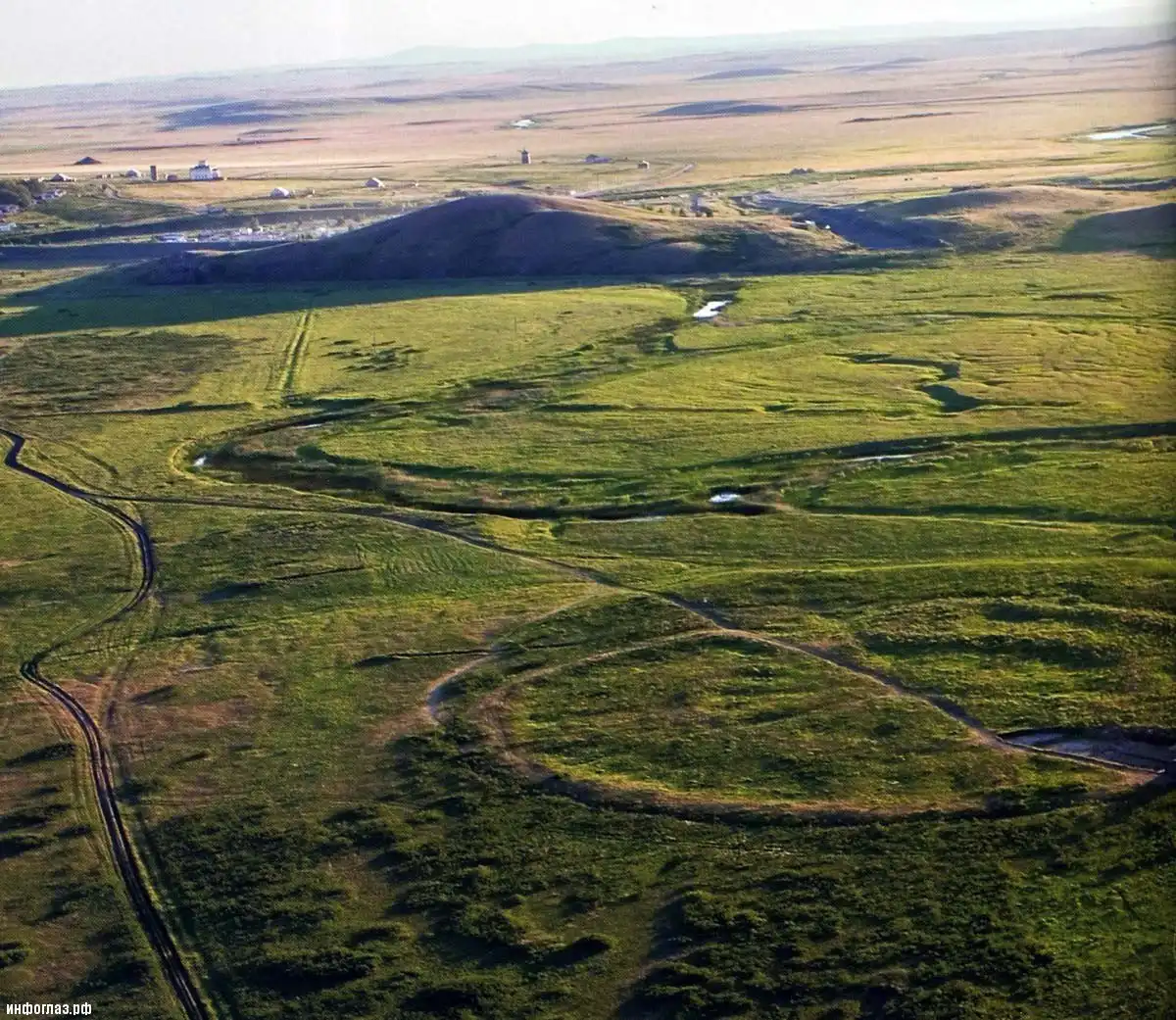 «Города» удивительно схожи между собой. Обязательно обнесены стенами и рвами (кстати, довольно сложные фортификационные сооружения). В плане это овал, круг или прямоугольник, близкий к квадрату. «Овальных» городов шесть: Берсаут, Аланды, Исиней, Кизил… Столько же круглых, Аркаим из их числа. Больше всего «угловатых»: Степное, Устье, Родники… Есть и такие, в плане которых контуры укреплений накладываются друг на друга. К примеру, на аэрофотоснимках Степного и Куйсака проглядываются все три фигуры. Здесь трижды перестраивали укрепления. Считается, вначале они возводились по овалу, потом вкруговую, а на закате Страны городов – прямоугольником. Какой бы формы ни был град, строился он как бы по типовому проекту. В центре обязательна площадь. Одна -две улицы вкруговую замощены бревнами, под ними ливневка, здесь же стоки из бытовой канализации. В домах (это, скорее, квартиры, их стены общие, эдакий одноэтажный дом на 10-30 «квартир») – колодцы, кладовые, кухни с очагами и «застольем», спальни. Смотрите, сколько удобств! «Квартиры» огромные – до десятка спален-комнат. Общая площадь каждой «квартиры» 100-180 кв.м. Судя по всему, они были родовые, спальни по числу семей, а всего на 60-70 родичей. При каждой «квартире» хоздворик и мастерская. Столярничали и собирали боевые колесницы (древнейшие в мире). Много было металлистов – бронзоваров, кузнецов и литейщиков. Скот горожане не держали. Город был центром сельской округи на несколько деревень, где разводили скотину, сеяли злаки. Найдены даже следы орошения.