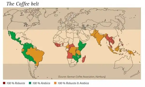 Кофе выращивается в строго определённой области, называемой кофейным поясом планеты