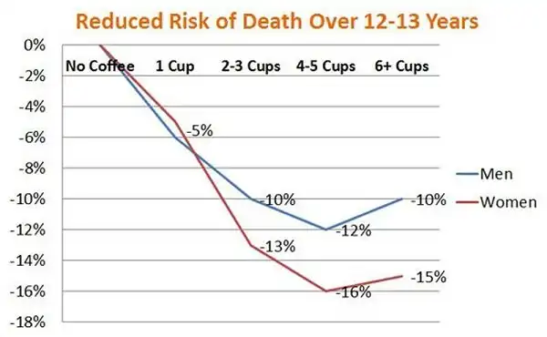 Кофе содержит много антиоксидантов (это самый большой источник антиоксидантов в диете среднего западного человека!). Это помогает в борьбе с так называемыми свободными радикалами, которые служат причиной множества тяжёлых болезней. В результате любители кофе имеют меньше шансов заболеть такими заболеваниями, как болезнь Паркинсона, сахарный диабет и болезни сердца.