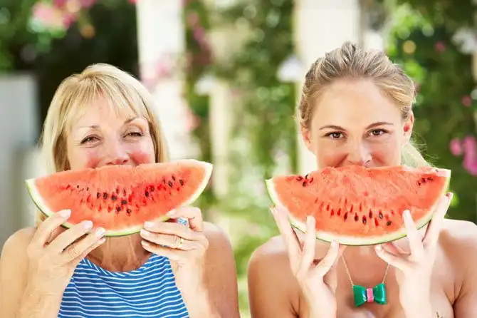 Арбуз обладает чрезвычайно высоким содержанием воды. Согласно USDA, на 91,5 процентов арбуз состоит из воды, что означает, что этот фрукт может помочь человеку избежать обезвоживания в течение дня. Есть арбуз или выпивать сок арбуза каждый день – вот один из самых вкусных способов избежать обезвоживания в течение этого жаркого лета!