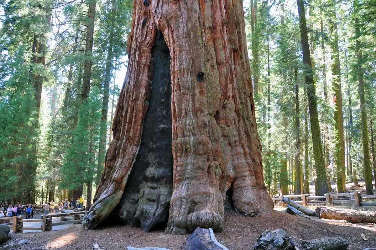 Одним из секретов долговечности гигантских секвой является их толстая и прочная огнестойкая кора. Но бывает, во время частых в южной Калифорнии пожаров дерево выгорает насквозь.