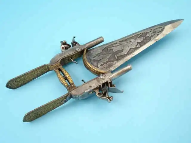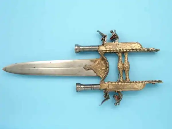 Кинжал катар с кремневыми пистолетами (Katar Flintlock Pistol) очень необычное и редкое оружие. Его цена на оружейных аукционах достигает $ 6000 — $ 8000.
