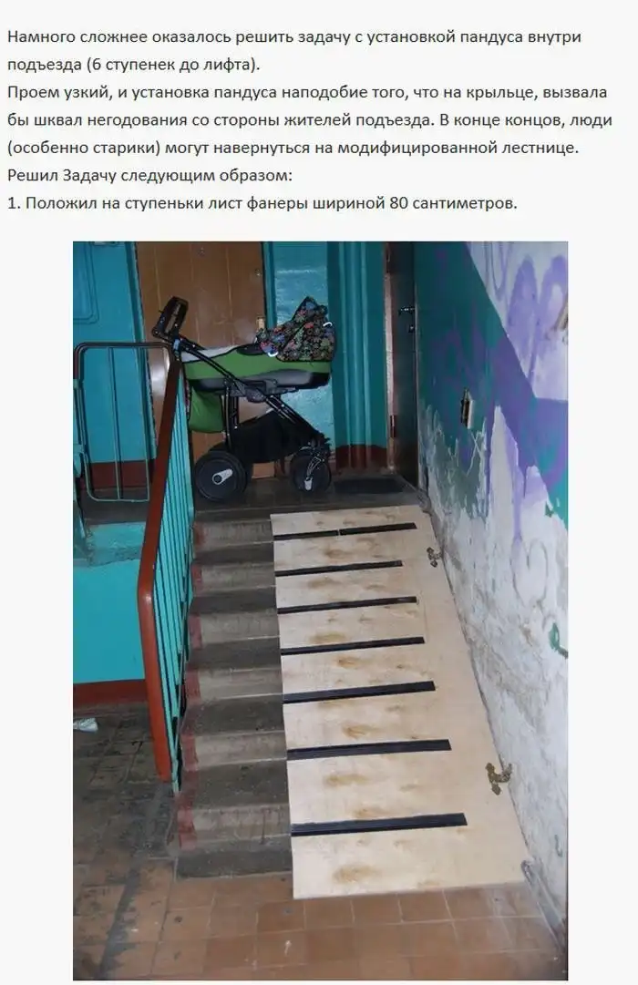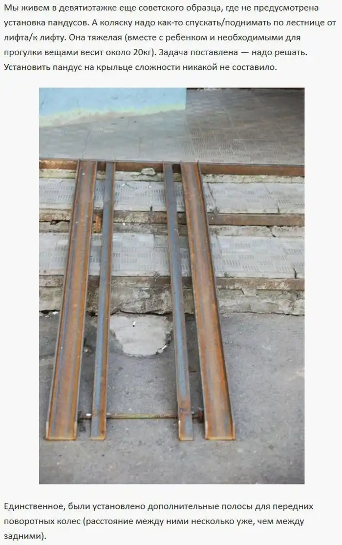 В большинстве случаев, дома, в которых мы живем, не оборудованы специальными пандусами, благодаря которым можно безопасно спустить по лестнице коляску с ребенком без посторонней помощи.