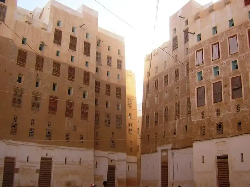 Именно это обстоятельство породило высказывание немецкого журналиста и путешественника Ганса Хельфрица о Шибаме как о «городе небоскребов» или «Манхэттене пустыни». Кстати говоря, такой тип архитектуры уникален не только для Йемена, но и для всего Востока. Шибам строился как фортификационное сооружение еще в V веке до нашей эры.