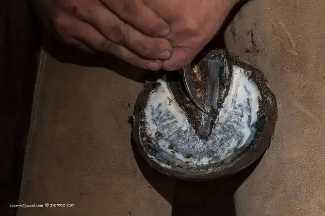 Опилки вычищаются специальным крючком для ухода за копытами.