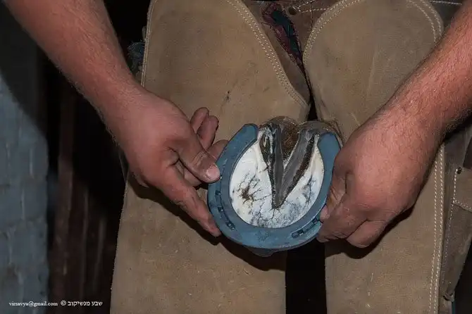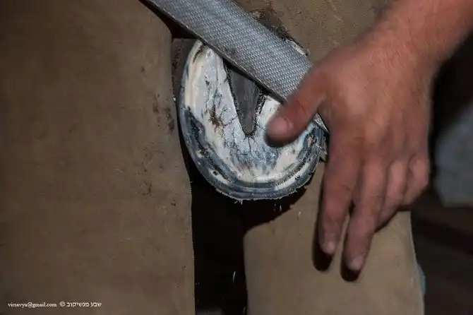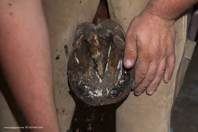 Копыто со старой подковой и подошвой, забитой опилками.