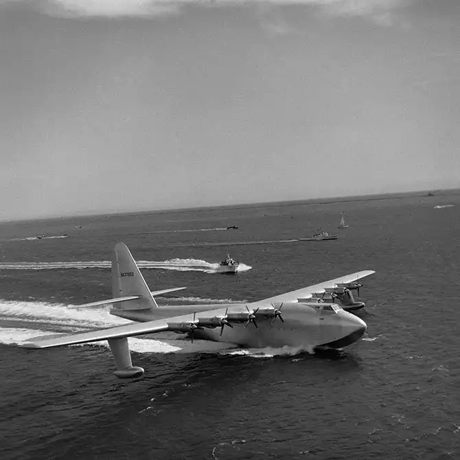 «Геркулес» до сих пор сохраняет громкие статусы самого крупного гидросамолета в истории и обладателя самого большого размаха крыла (98 метров), хотя создан был еще под руководством американского магната Говарда Хьюза во времена Второй мировой войны. Портит картину несколько обстоятельств: предназначавшийся для переброски 750 солдат в полном снаряжении через Атлантику, «Геркулес» так ни разу и не пересек океан и остался в единственном экземпляре, причем деревянном. Столь экзотический для авиации материал был выбран из-за ограничений, накладываемых военным положением, в котором оказалась экономика Штатов – относительно металлов, особенно алюминия, наблюдался дефицит. В 1947 году деревянный «Геркулес» все же взлетел, однако от дальнейшего развития проекта отказались.