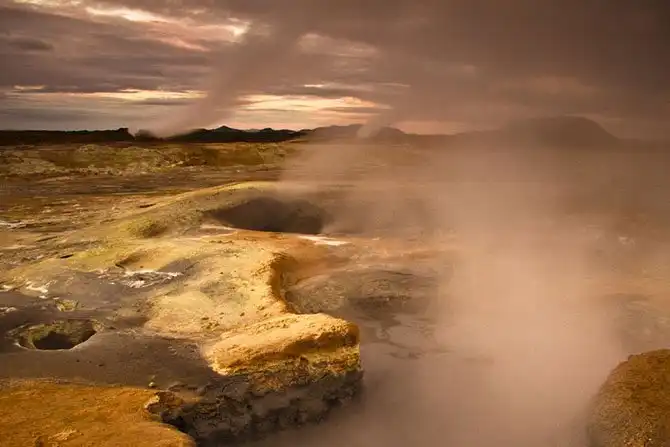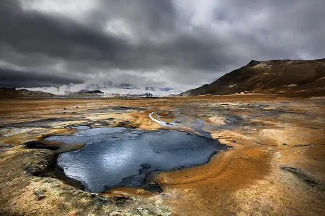 NĂĄmaskard — регион на севере Исландии, который находится у подножия горы Namafjall — это земля вулканов и гейзеров в чистом виде. Здесь у живых организмов нет ни малейших шансов для вегетации, поэтому не удивительно, что это активная геотермальная область является одним из самых ужасающих пейзажей на Земле. Вся поверхность здесь покрыта пузырящейся грязью, над которой стелятся серные облака пара, а вулканы выделяют ядовитые газы.