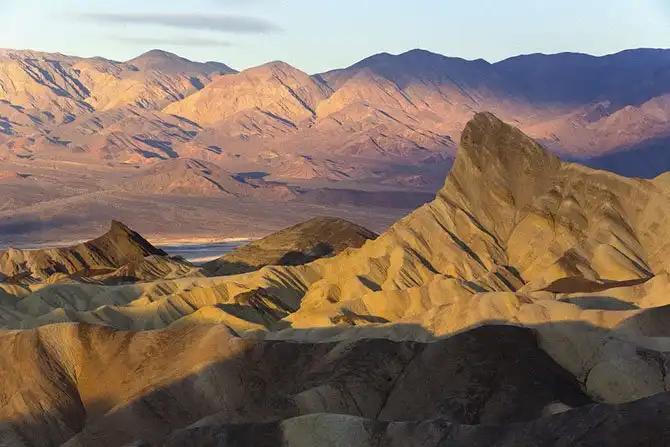 Долина Смерти — это самое сухое и самое низкое место в Соединенных Штатах. В июле 1913 года здесь была зарегистрирована температура почти 57 градусов по Цельсию, это был рекорд самой высокой температуры на Земле, который в течение длительного времени не был побит. Название долины полностью соответствует преобладающим здесь условиям. Одно из самых красивых мест в Долине смерти — это Забриски Пойнт (на фото).