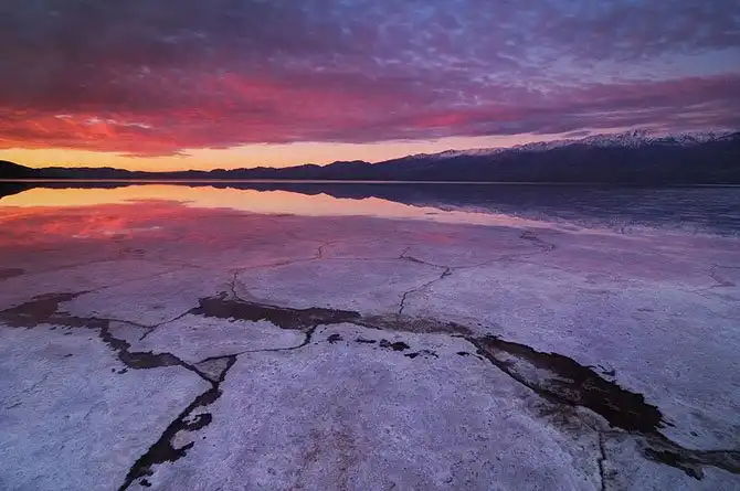 Еще одно красивое и одновременно морозящее кровь в жилах место в Долине Смерти — это Badwater (Плохая Вода). Высокие температуры в здешних местах — средняя примерно 50 градусов по Цельсию — не дают шансов живым организмам на активную жизнедеятельность.