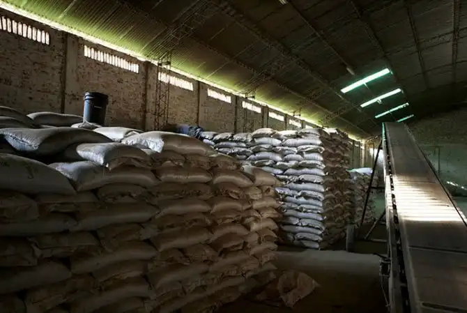 На деревенской фабрике урожай обрабатывают, пакуют в мешки и продают оптовикам.