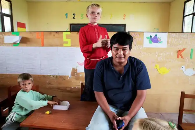 Десять лет назад боливийские власти профинансировали строительство школы. Она состоит из двух зданий и делится на три класса: дети 5-8 лет, 8-11 и 12-14-летки. Мальчики и девочки учатся вместе.