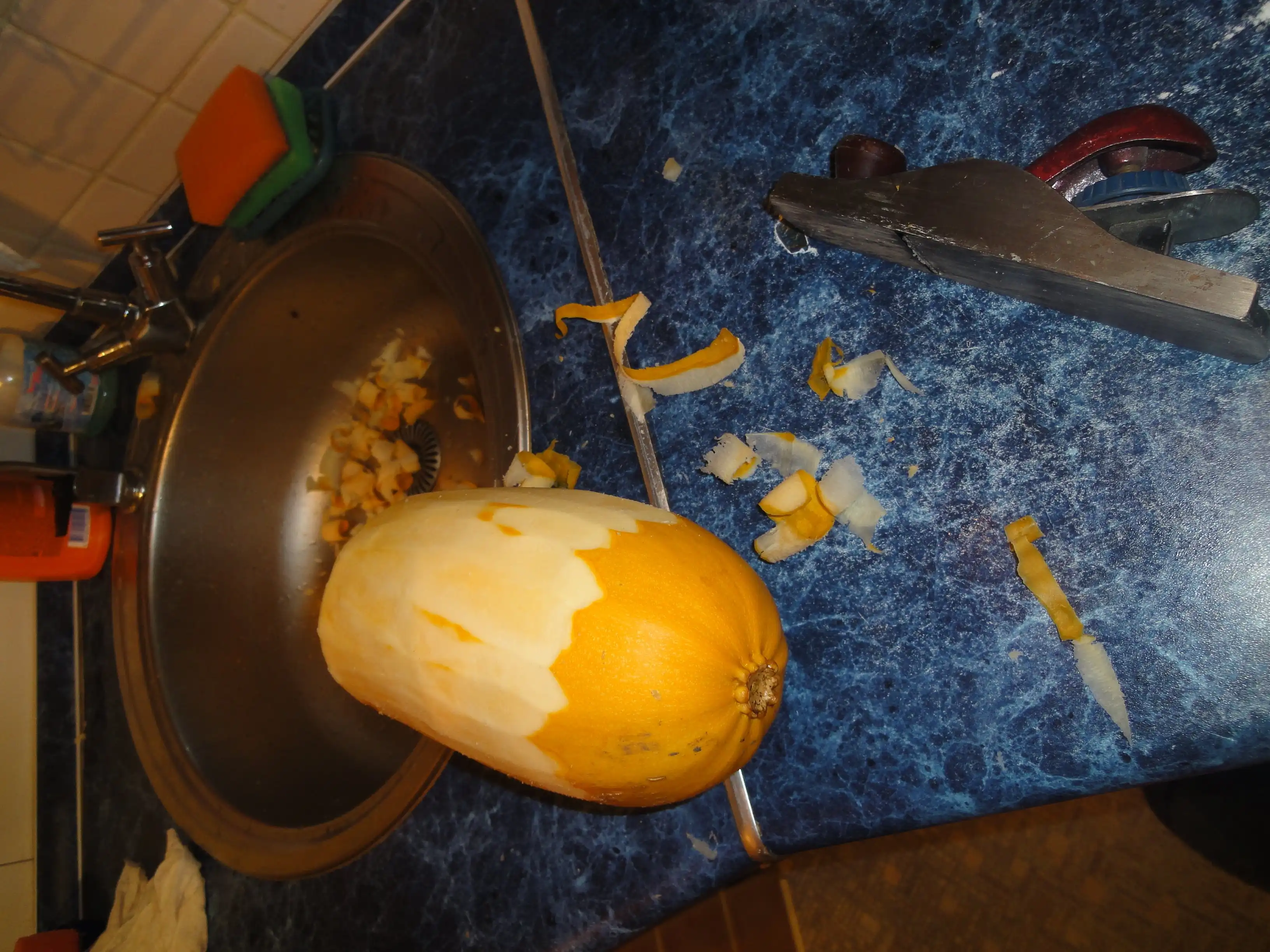 В общем осень заканчивается тут купили кабачков, кожа у них каменная, нож соскальзывает, чистить как полено строгать, если не хуже.