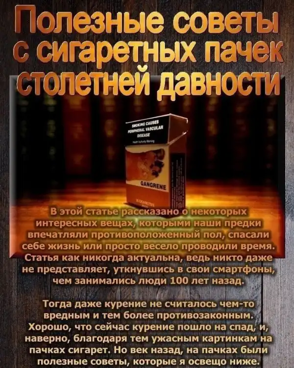 Cтарыe и полезныe советы, с пачек сигарет столетней давности