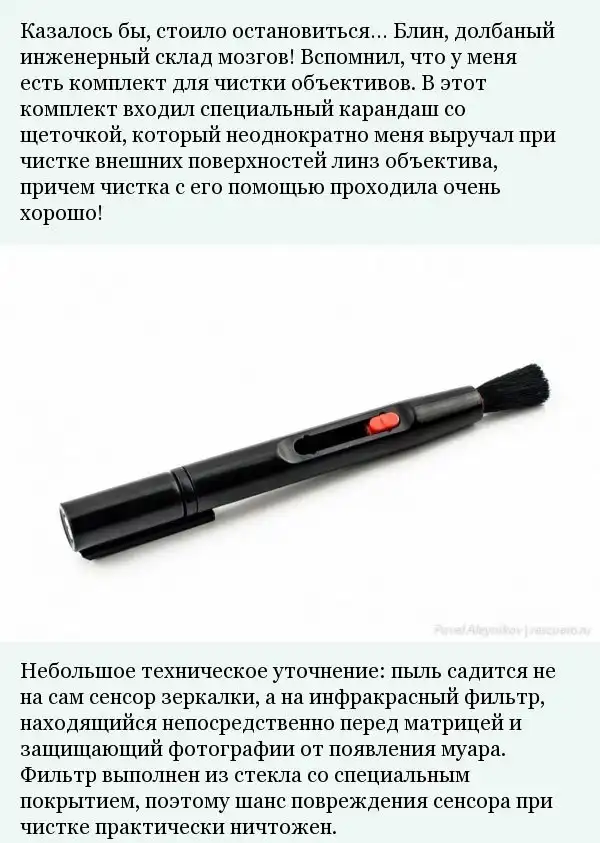 Многие владельцы зеркальных фотоаппаратов в полном объеме не располагают достаточной информацией на счет их эксплуатации и обслуживании, а потому и случаются подобные ситуации.