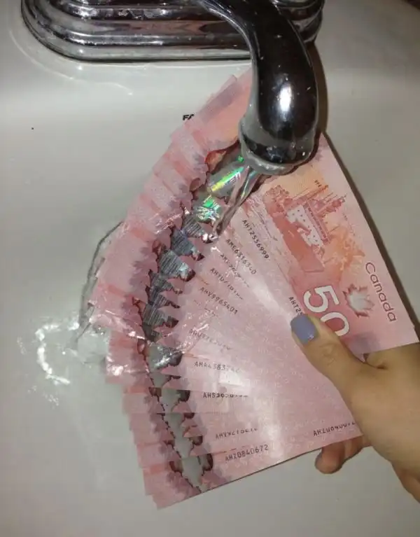 Австралия и Канада, наряду с еще несколькими странами, давно перешли на полимерные деньги. Это значит, что теперь не нужно рвать на голове волосы, когда бросил стираться джинсы, не проверив карманы на наличие бабла. Даже если оно там есть, ничего с ним не станется.