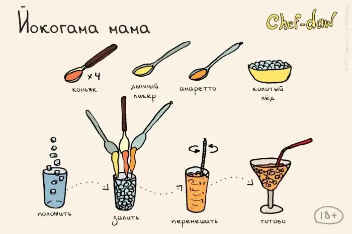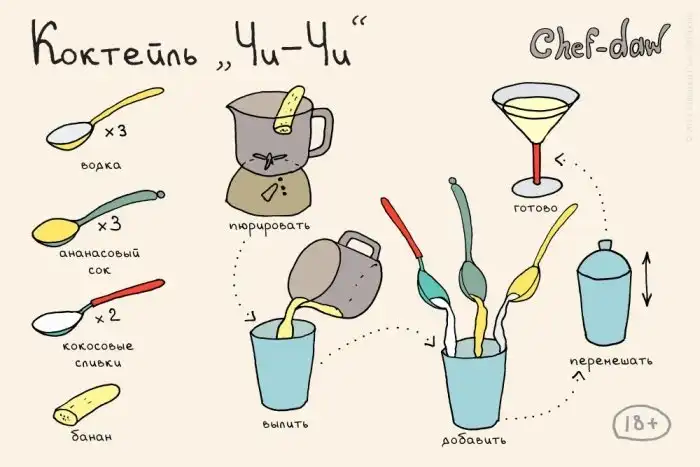 Иллюстраторы Станислав и Галина Хабаровы рисуют кулинарные рецепты на открытках Chef-daw. Особого внимания заслуживают рецепты различных коктейлей, в приготовлении которых нет ничего сложного.