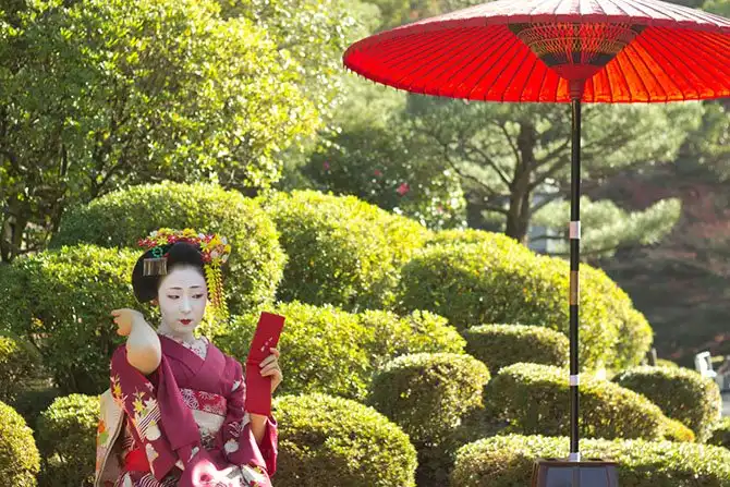 Ну и куда же без гейши — традиционно одетой, накрашенной и причесанной девушки в японских чайных домах, гостиницах и ресторанах. Она развлекает гостей японским танцем, пением, чайной церемонией и беседой на любую тему — своего рода японская гетера. Банкет с гейшей в традиционном стиле называется «о-дзасики», что дословно означает «комната с татами». Считается, что всамделишных гейш в Японии осталось не так много: не более тысячи, из них в Токио и Киото — примерно по три сотни. Может быть, вам повезет! Фото: apanexperterna.se / flickr