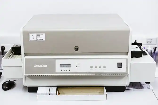 После того как клиент банка заполнил заявку на получение карты, его данные поступают в процессинговый центр, а потом в специальную программу собственной разработки, с помощью которой карта печатается в эмбоссере.
