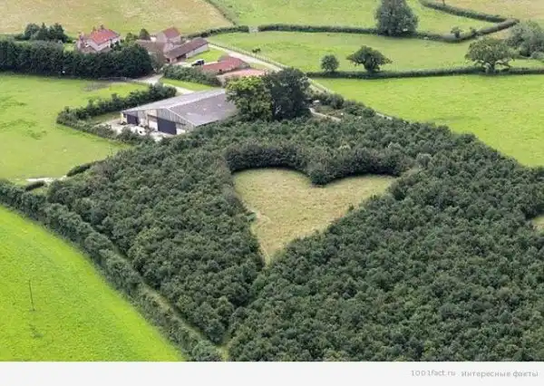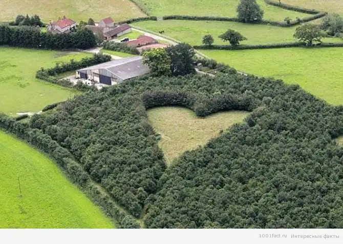 Лес из дубов в виде сердца в Великобритании, посаженных Уинстоном Хаузом в честь горячо любимой покойной супруги Джанет (более 6000 деревьев).