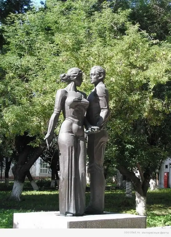 Памятник влюблённым в Тольятти. Скульптуру изготовили в 80-е для нового ЗАГСА, но руководство посчитало, что девушка в ней не соответствует облику советской женщины. Позже её установили в аллее на территории Тольяттинской ТЭЦ.