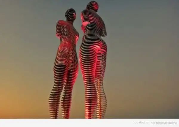 Скульптура «Али и Нино» в Грузии. Семиметровый уникальный шедевр, где фигуры медленно движутся друг к другу.