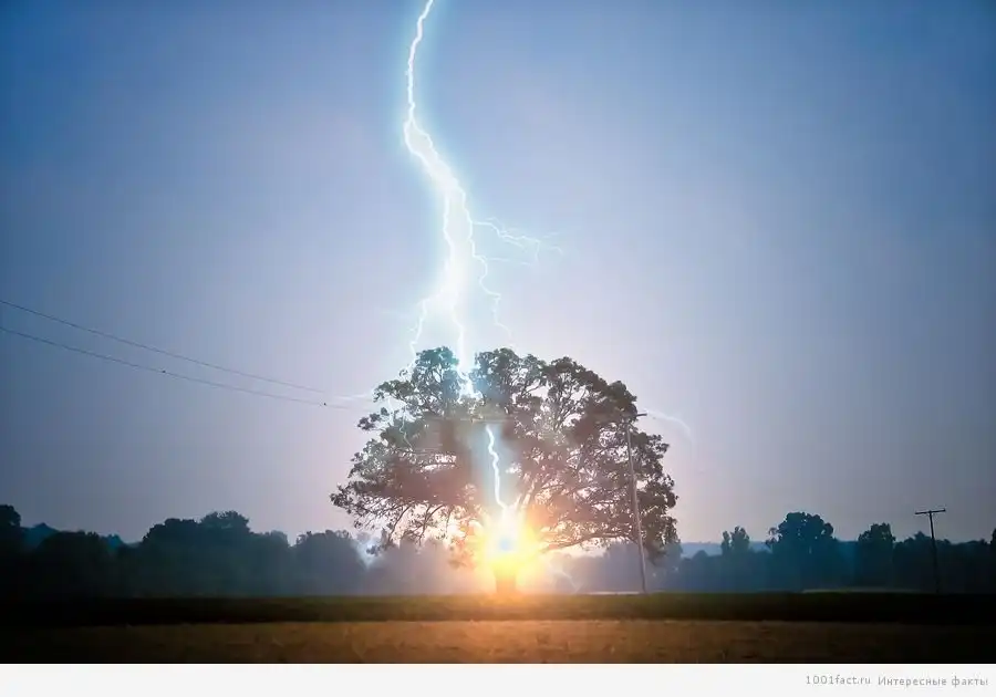 Интересный факт — некоторые деревья просто притягивают к себе молнии во время грозы. Ученые провели исследования, изучив следы от молний (полосы на деревьях без коры) и пришли к следующим выводам — некоторые деревья являются практически безопасными, а от некоторых следует держаться подальше.