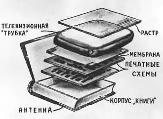 —Печатная схема телевизионного приемника. Все вертикальные проводнички, сопротивления и даже конденсаторы напечатаны металлической краской на этой стороне, а горизонтальные — на той. Кое-где пробиты дырочки, залитые краской, и там проводники соединяются. А узелки — это кристаллические усилители, они работают как обычные усилительные лампы. Слышали о транзисторах?
