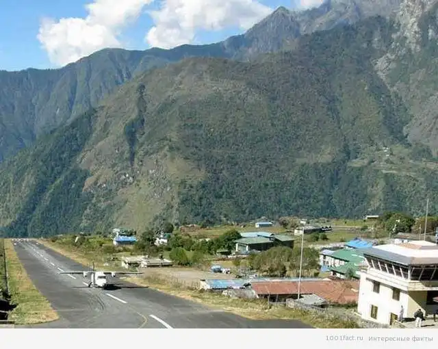 Аэропорт имени Тенцинга и Хиллари, Лукла (Непал). Как же, наверное, «икается» сэру Эдмунду Хиллари, первопокорителю Эвереста, на том свете всякий раз, когда пилоты буквально пикируют на полосу основанного им аэропорта, чтобы не вспахать брюхом самолета близкие горы!