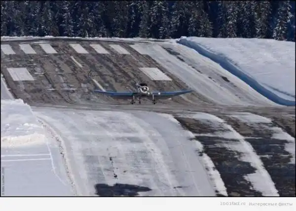Аэропорт Куршевель (Франция). Здесь ВПП ненамного длиннее (525 м), но суть не в этом. Привыкли сажать самолеты на стопроцентно ровную, как стол, поверхность? Познакомьтесь с уклоном в 18,5 градуса на высоте 2 км! Даже на маленькой «Сессне» это проблемы, холодный пот и хорошая порция адреналина.