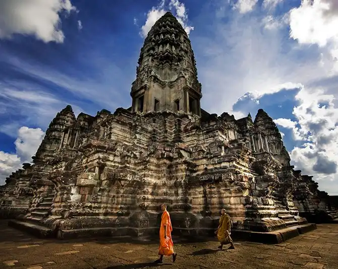 Камбоджа славится богатой культурой с многочисленными традициями. Здесь можно найти множество древних храмов, самым известным из которых является Ангкор-Ват, а также дворцовых комплексов, музеев и других достопримечательностей. Средняя стоимость гостиничных номеров за ночь составляет $20; обед на одного человека обойдётся в $3. На фото: Ангкор-Ват. (Trey Ratcliff)