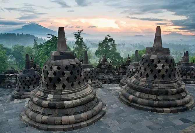 Индонезия является поистине одним из лучших экзотических направлений для отдыха. Всего за $20 на день Вы сможете позволить себе вкусно поесть, посетить увлекательные достопримечательности. На фото — буддийская ступа Боробудур. (Justine Hong)