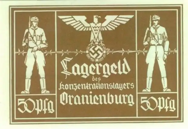 Когда во время Второй мировой войны людей свозили в нацистские концлагеря и гетто, они должны были обменять свои деньги и облигации на «местную валюту». Эти местные банкноты были плохо сделаны, ничего не стоили и не имели хождения за границами лагерей. Первым лагерем, который выпустил свои псевдоденьги, стал концентрационный лагерь Ораниенбург, находящийся в непосредственной близости от Берлина. Лагерь был открыт в 1933 году и должен был стать «показательным» местом заключения в фашистской Германии.