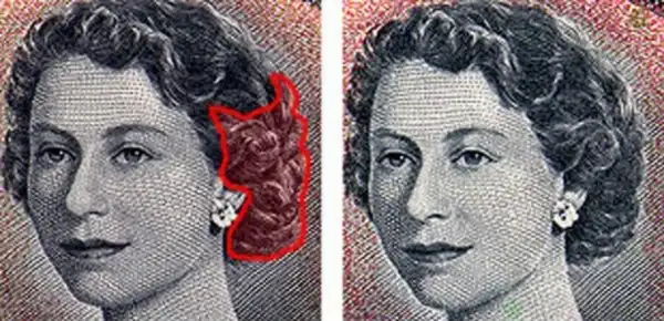 В 1951 году королева Елизавета II позировала канадскому фотографу Юсуфу Каршу. Одна из фотографий была использована спустя три года для новой серии канадских банкнот номиналом от $ 1 до $ 1000. После того, как банкноты были выпущены, кто-то заметил, что в прическе королевы, изображенной на банкноте, замаскировалось лицо дьявола. Любопытная игра света и тени привела к тому, что компания, спасая престиж королевы, была вынуждена перевыпустить банкноты в 1957 году. Все номиналы были переизданы, кроме $ 1000, на которой дьявол за ухом королевы жил еще несколько лет.