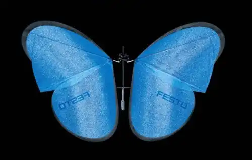 Крылья робота-бабочки изготовлены из тончайших прутов из углеродистого волокна, а затянуты они еще более тонкой, но чрезвычайно прочной и упругой конденсаторной пленкой, окрашенной в характерный голубой цвет. «Крылья робота-бабочки не складываются плотно друг с другом, между ними всегда остается воздушный промежуток» — пишут представители компании Festo, — «А когда робот машет своими крыльями, создаются особые воздушные завихрения, дающие бабочкам их уникальную аэродинамику».