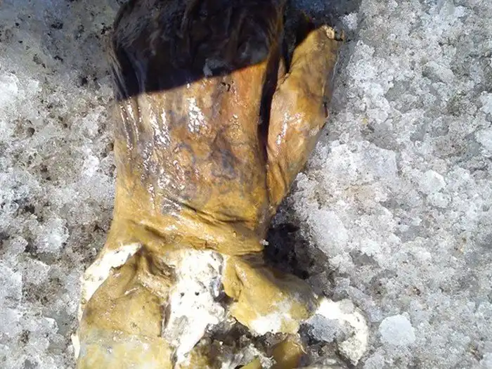 По странному стечению обстоятельств из 42-х найденных останков, только эти останки, младшего офицера, были мумифицированы - тело хорошо сохранилось, в том числе и кожные покровы.
