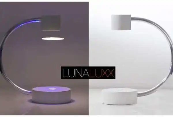 Чтобы включить светильник, нужно поднести специальный диск-рассеиватель достаточно близко к его верхней части – диск загорится и повиснет в воздухе. Для этого в Lunaluxx используется эффект магнитной левитации: в диск встроен постоянный магнит, а в верхушку светильника – катушка-электромагнит. Встроенный в светильник контроллер изменяет направление магнитного поля электромагнита около 1000 раз в секунду (т.е. то притягивает, то отталкивает постоянный магнит), благодаря чему светящийся диск парит в воздухе.