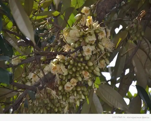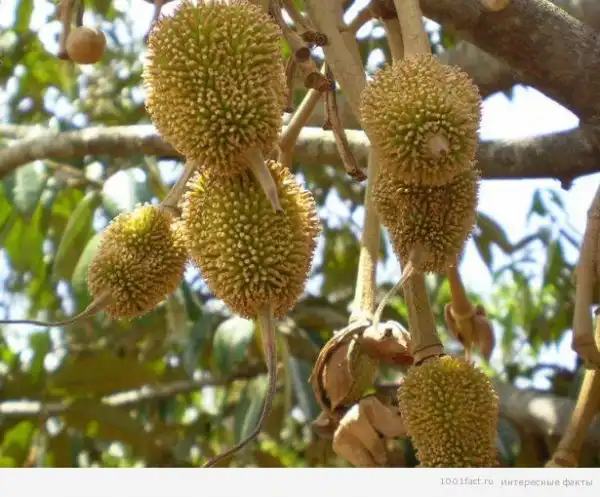 Даже цветет дерево дуриана необычно. Цветки на длинных ножках вырастают прямо на стволе или на толстых ветках. И довольно часто помимо пчел их опылителями становятся летучие мыши.