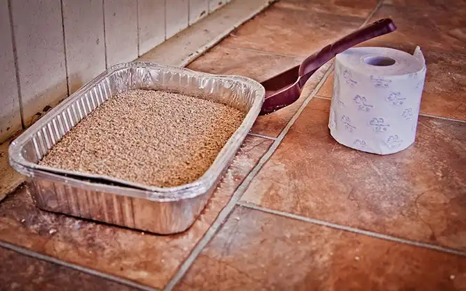 Прежде чем засыпать в лоток наполнитель, сперва покройте его дно тонким слоем соды. Далее следует сам наполнитель, и завершающим слоем вновь служит сода.