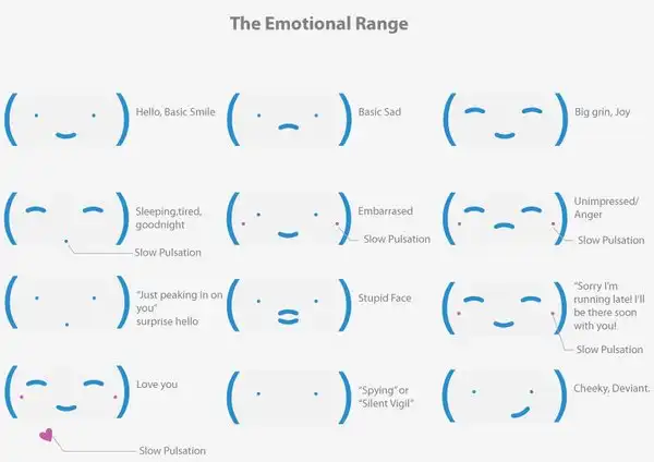 Дизайн-проект настольной фигурки, которая может выражать 15 разных эмоций. Её можно было бы подарить близкому человеку, маркерами придать сходство с собой, а потом дистанционно через интернет или SMSменять «выражение лица». Гораздо более милый способ выразить эмоции по сравнению с прочими средствами связи.