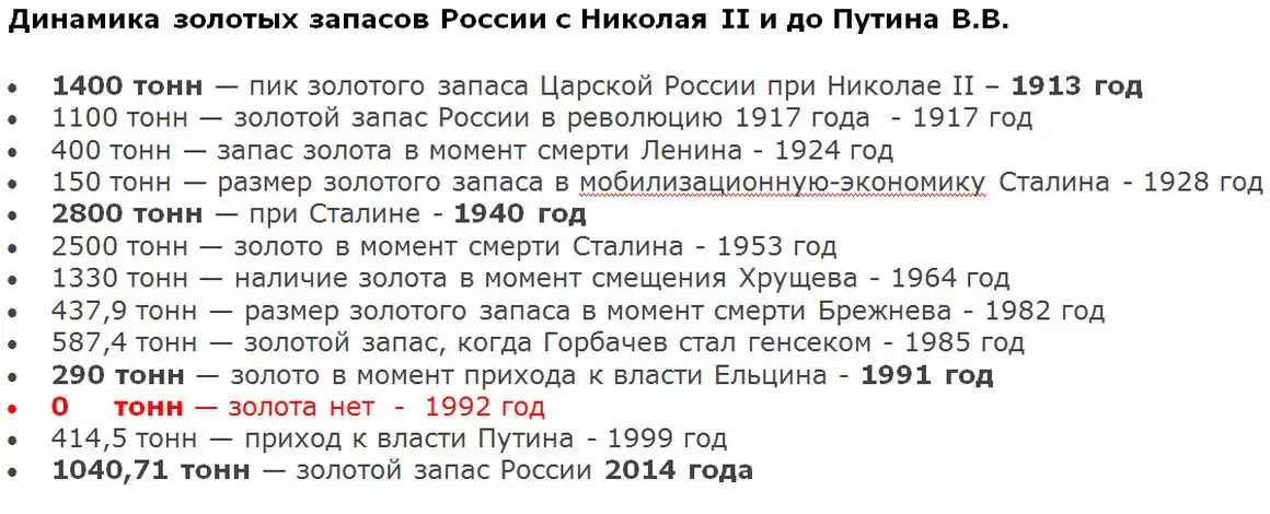 Внимательно посмотрев на временные даты и соответствующие им цифры золотого запаса, можно сделать вывод, кто же из наших правителей радел за интересы нашего государства, а кто - нет.
