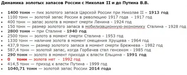 1989г. золотой запас = 784т. 1991г. золотой запас =290т, а в 1992 = 0, без комментариев.