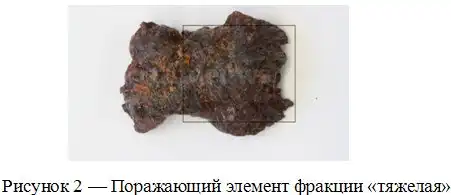 В результате исследования фотоматериалов из сети Internet, связанных с авиакатастрофой Boeing-777 МН17, идентифицированы два типа поражающих элементов, соответствующие фракции «тяжелая» и фракции «легкая-1». Внешний вид поражающего элемента фракции «тяжелая» представлен на рисунке 2