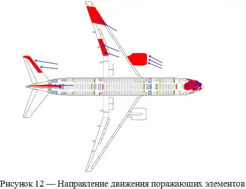 Результаты определения направления движения поражающих элементов на основе анализа основных повреждений планера самолета приведены на рисунке 12.