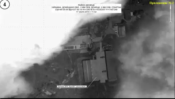 Необходимо отметить, что именно в районе н.п. Зарощенское по данным космической разведки МО РФ 17.07.2014 г. (№№4, 5 см. ниже) располагались самоходные огневые установки ЗРК «Бук» ВС Украины.