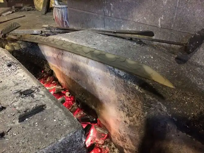 Линия закалки создаётся путём нанесения нескольких слоёв огнеупорной глины на лезвие. Клинок с засохшей глиной равномерно нагревается, а затем погружается в ёмкость с водой. Этот процесс носит название «яки-ирэ». Важно отметить, что в ходе этого процесса из-за характера термообработки кузнецу-оружейнику не всегда удавалось получить желаемую линию закалки. Глина на клинке – это, скорее, ориентир для закалки, но чем опытнее и искуснее был кузнец, тем точнее получалась линия закалки в том месте, где он нанёс глину.
