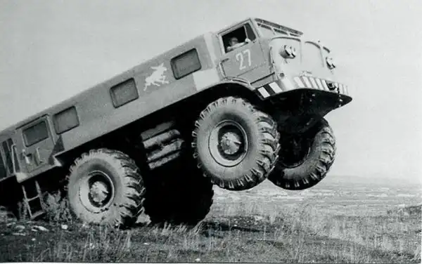 ЗиЛ-135L - ещё один предшественник.Каждый из двигателей имел собственную систему охлаждения с принудительной циркуляцией. Для лучшей маневренности автомобиль сделали полноприводным. Отличительной особенностью стали большие шины, что обеспечило автомобилю высокий клиренс.