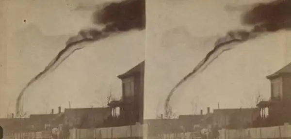 Первая фотография торнадоПрирода иногда демонстрирует свою громадную разрушительную силу. Это изображение торнадо сделано в 1884 году в округе Андерсон, штат Канзас. Фотограф-любитель А.А. Адамс находился в 22.5 км от смерча.