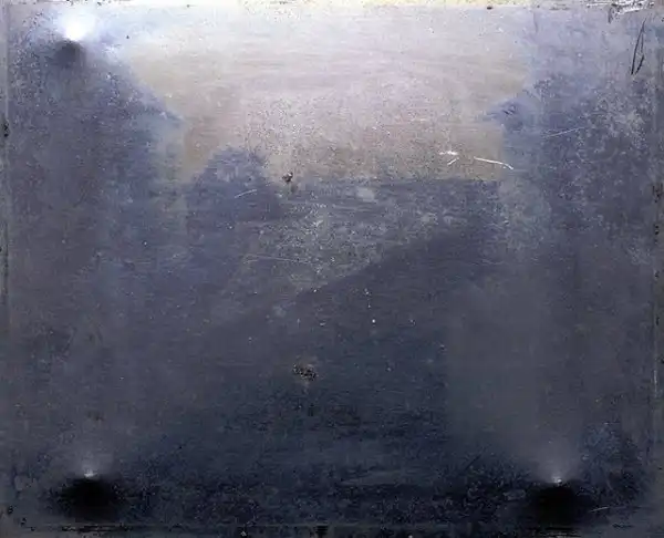 Самая первая фотографияЭтот снимок под названием «Вид из окна» в 1826 году сделал первооткрыватель фотографии Жозеф Нисефор Ньепс. Кадр снят из окна верхнего этажа в имения Ньепса в Бургундии, Франция. Изображение получено с помощью процесса, известного как гелиография.